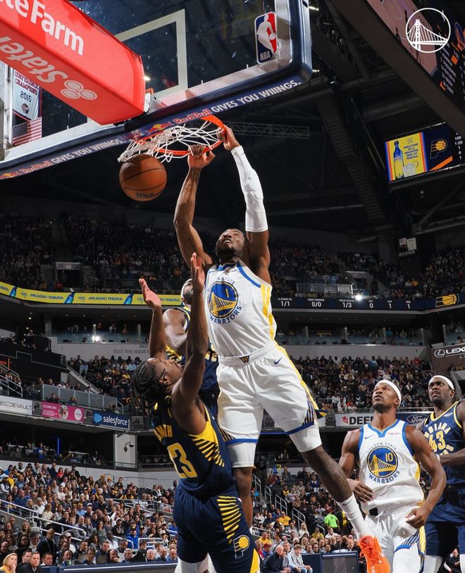 全场比赛,巴特勒20分7助攻5篮板,库明加17分5篮板,波杰姆斯基16分4篮板,库里24分2助攻4三分(22中8+三分14中4,下半场10中2+三分8中1还有3失误),波斯特9分3篮板,追梦8分11篮板。步行者的Q杰克逊拿到25分10助攻6篮板,命中率62.5%,三分命中率75%。
